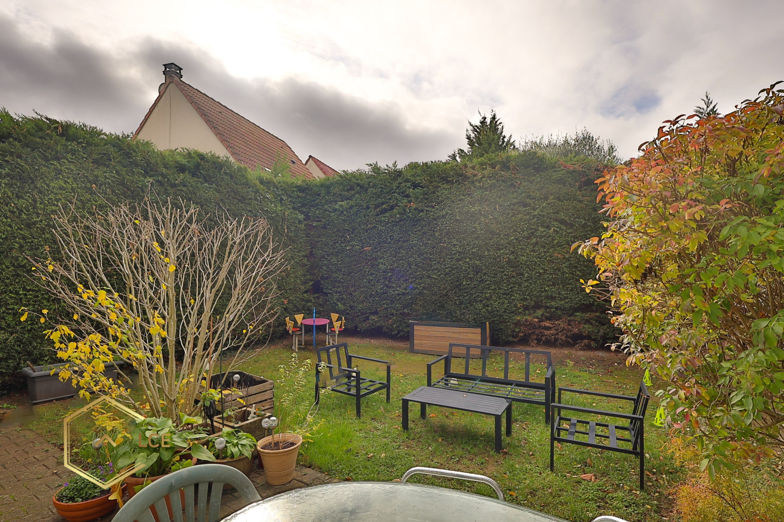 La porte fenêtre ouvre dans la salon donne accès au jardin de 321m² arboré et entièrement clôturé, sans vis-à-vis. Exposé sud-ouest, cela vous offrira un ensoleillement optimal et une belle intimité. La terrasse, équipée d’un store banne électrique, permet de profiter agréablement des beaux jours.